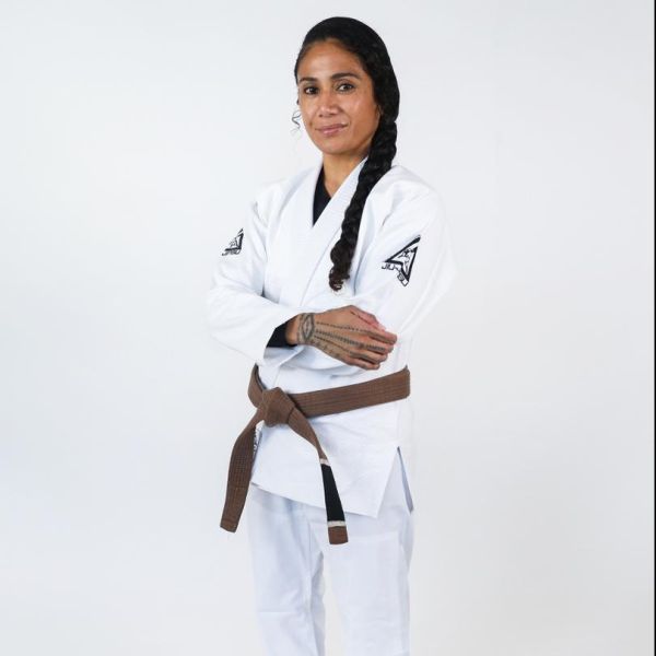 *Sizes indicated are based on the gi AFTER it has been shrunk in the wash. This gi fits slim, so if you're on the border between two sizes, choose the larger size gi for a looser fit, or the smaller size for a slimmer fit. For reference, Eve is is 5'7" (140 lbs) and wears an F3.